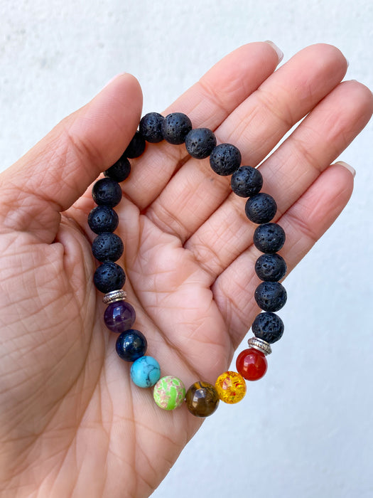 Lava Stone Bracelet with Seven Chakra Beads *Special